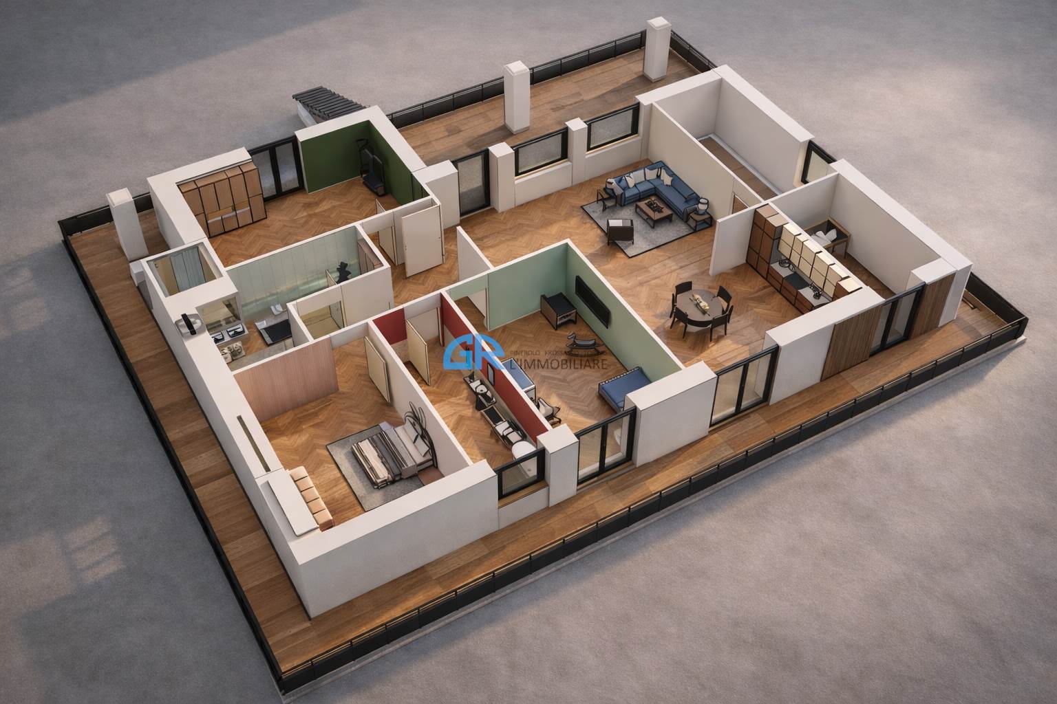 Gli ambienti sono progettati per garantire comfort, funzionalità e grande luminosità, con affacci aperti sul verde circostante.